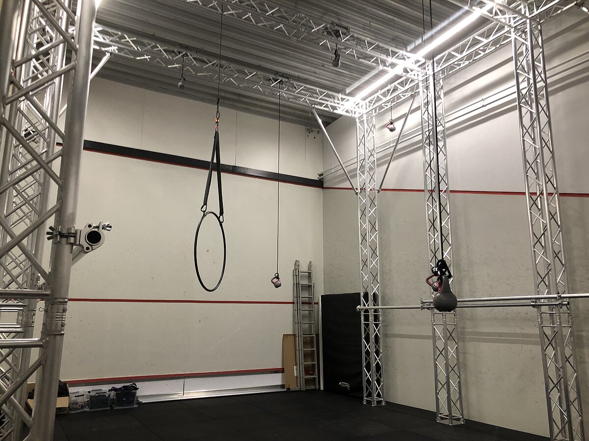Auf den Parkplatz fahren, ganz nach hinten durchgehen und auf der rechten Seite zum Bewegungsraum abbiegen.